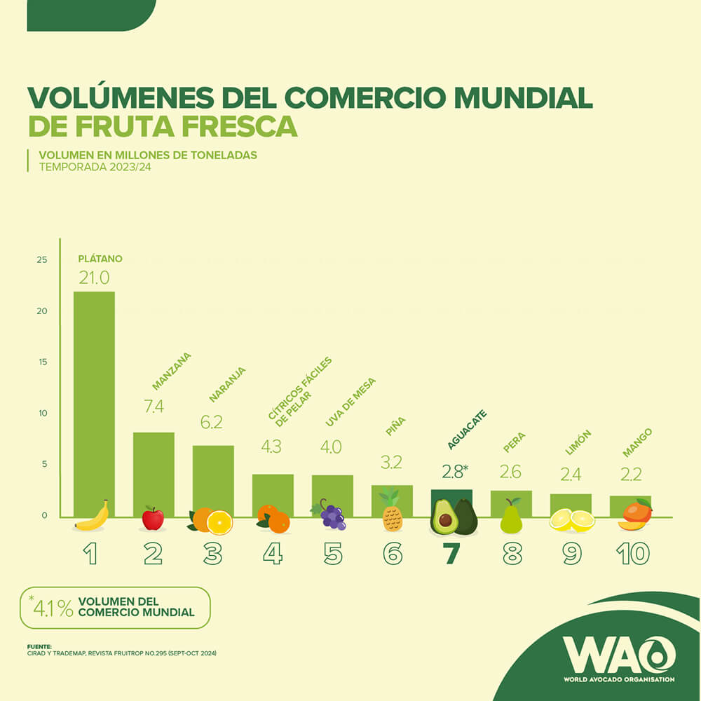 Desde un punto de vista más amplio, los aguacates actualmente solo representan el 0,031% del comercio mundial total, una pequeña fracción de la producción agrícola mundial.