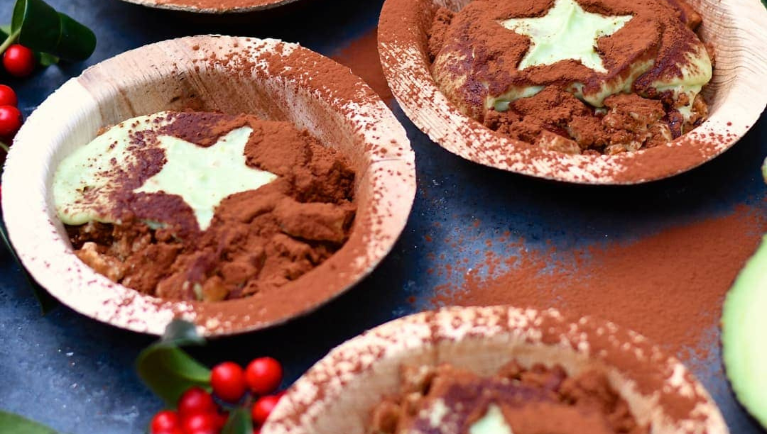 Dieses einzigartige Avocado-Tiramisu tauscht traditionelles Mascarpone gegen eine seidige Avocado-Kokoscreme, geschichtet mit espresso-getränkten Keksen für eine frische, indulgent Variante des klassischen Desserts.