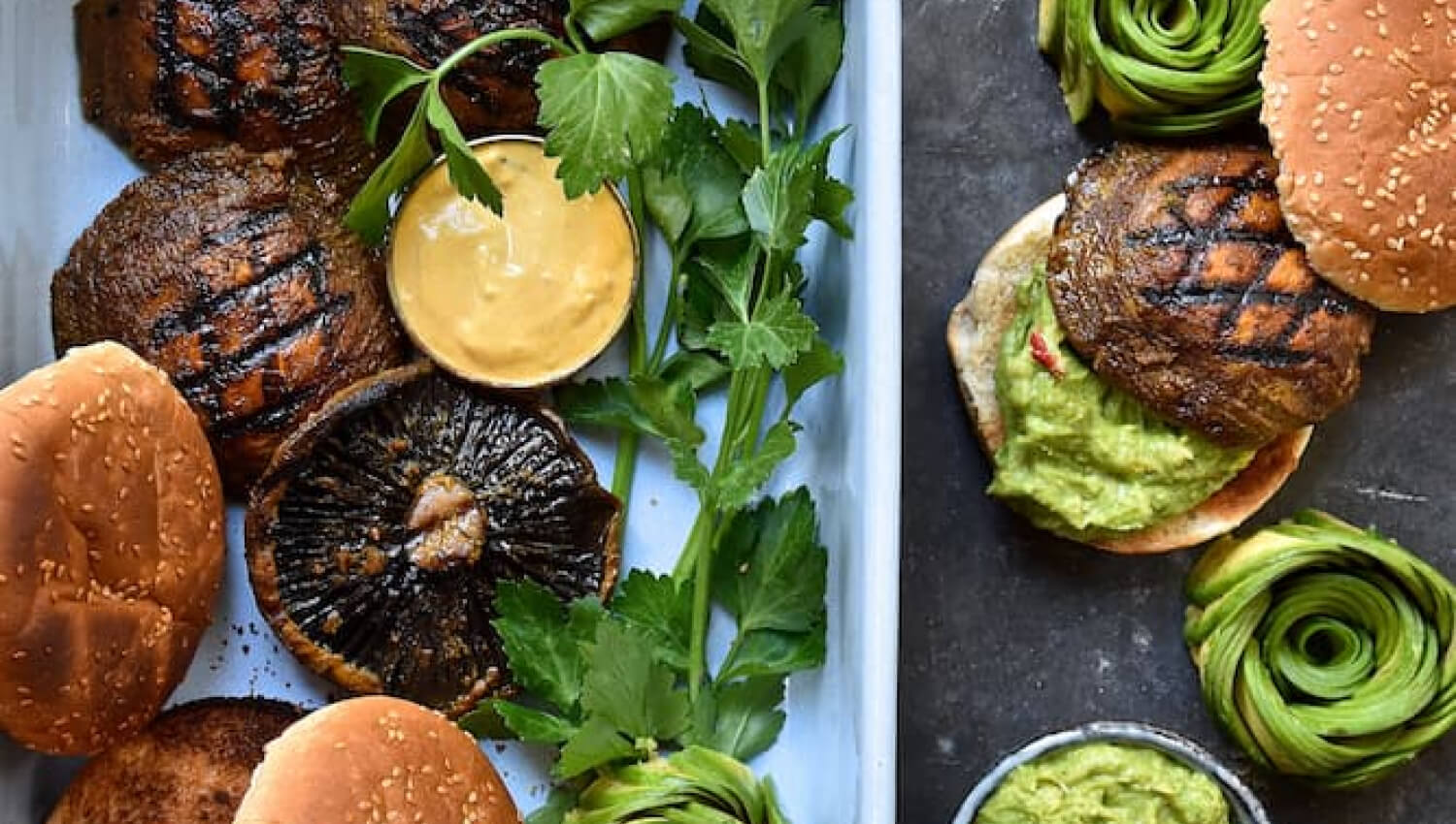 Dieser Baue-deinen-eigenen-Burger-Fest lässt cremiges Avocado und Guacamole neben saftigen Portobello-Pilzen und Curry-Mayonnaise strahlen für ein lustiges, geschmackvolles Festmahl!