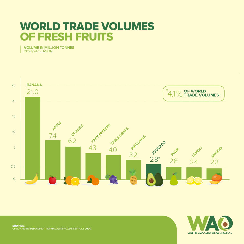 Taking a wider view, avocados currently only make up 0.031% of total world trade, a small fraction of global agricultural production.